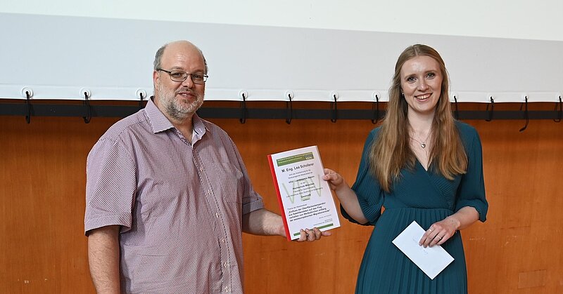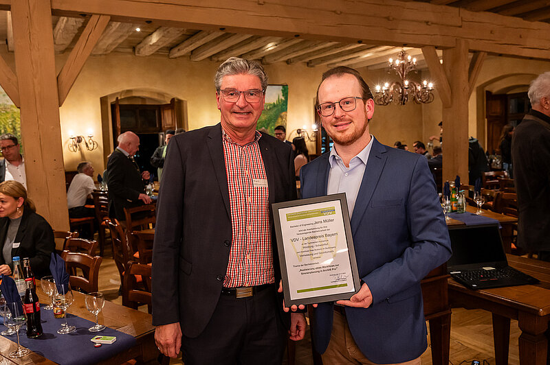 Das Foto im Anhang zeigt die Übergabe der Verleihungsurkunde an Felix Düßel, M. Eng., durch den VDV-Referenten an der THWS, Dr.-Ing. Lukas Hart.