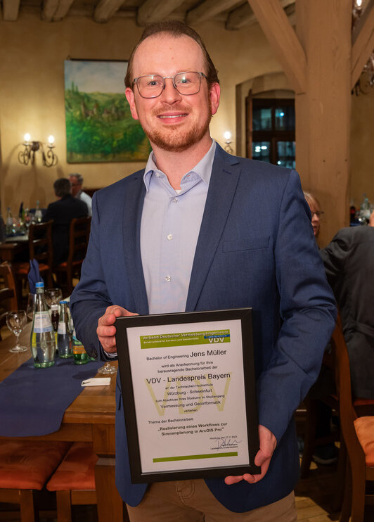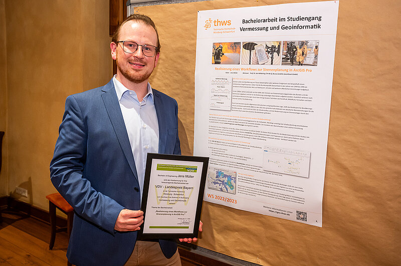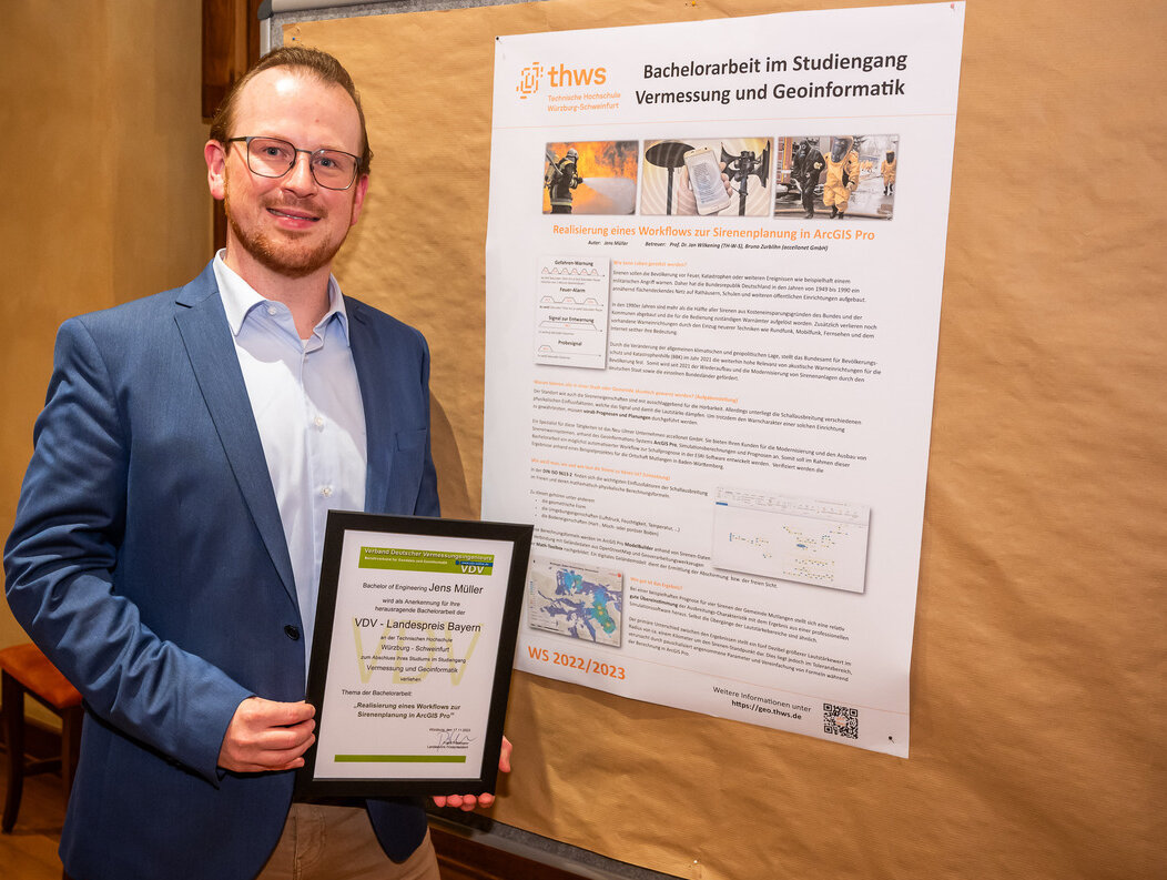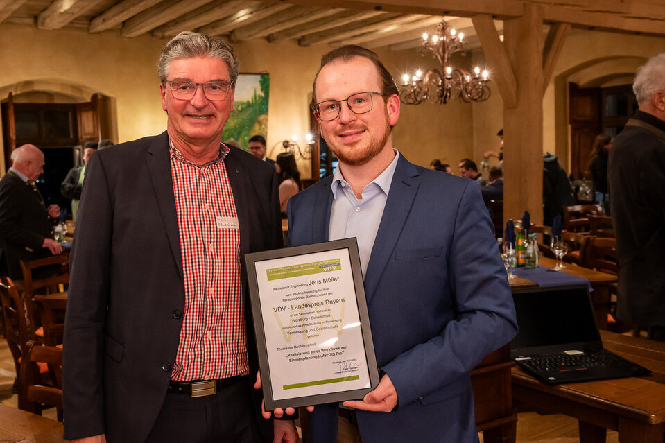 Der VDV-Landespreis Bayern 2025 an der Technischen Hochschule Würzburg-Schweinfurt, University of Applied Sciences, wurde zum Abschluss seines Studiums im Studiengang Geodata Technologies am 21.11.2025 verliehen an Herrn Felix Düßel, Master of Engineering.