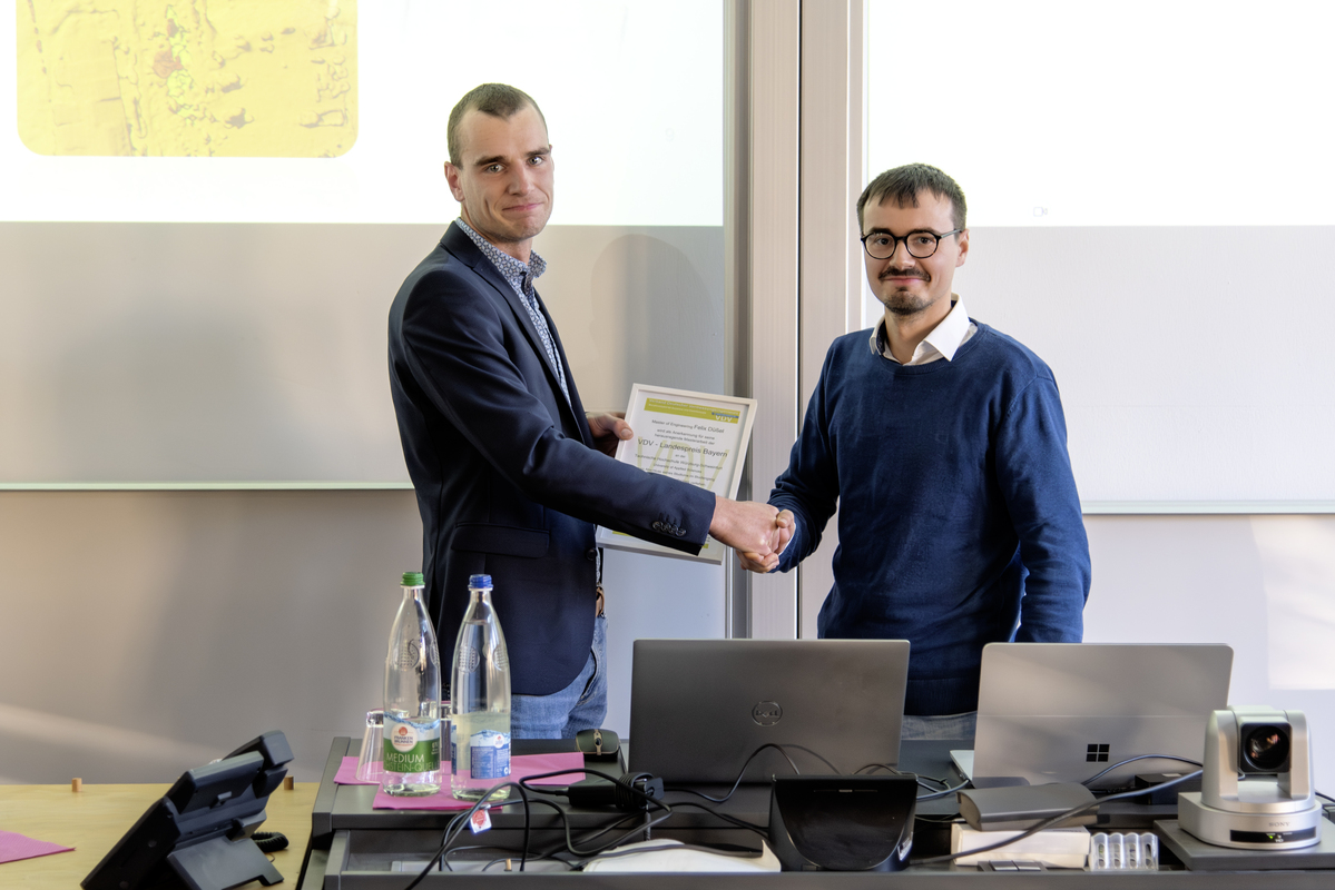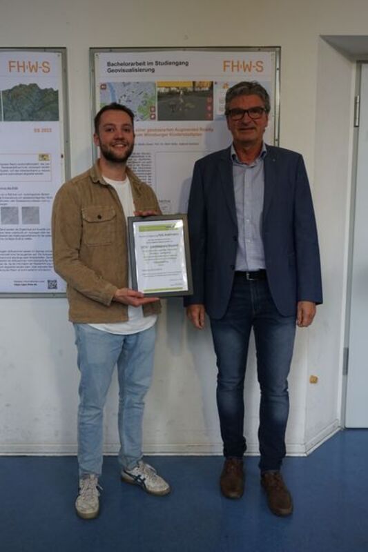 Im Rahmen des Geodätischen Kolloquiums an der Hochschule für angewandte Wissenschaften Würzburg-Schweinfurt (FHWS) am 18.11.2022 wurde vom Studiengang „Geovisualisierung“ Nils Adelmann B. Eng. geehrt.