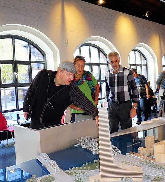 Hier im Kesselhaus, dem Informationszentrum der HafenCity, endete auch die Tour durch Hamburgs Geschichte. Wir konnten erkennen, wie Altes und Neues zusammenwächst. Auf dem großen 3D-Stadtmodell in der Halle des Kesselhauses sind die zukünftigen Baumaßnahmen zu bewundern.