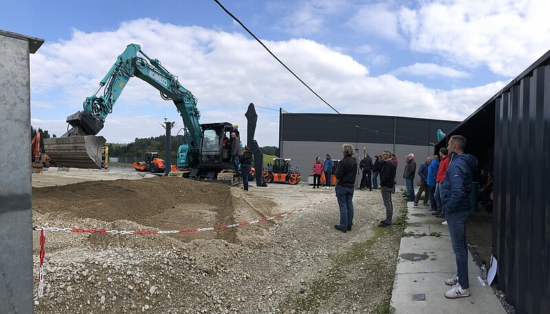 Im Anschluss durften die Teilnehmer vor Ort die Bagger-Automatik selbst ausprobieren. Auf dem Testgelände im Außenbereich wurde davon eifrig Gebrauch gemacht und perfekte ebene Flächen hergestellt.