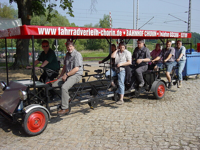 Der VDV-Bezirk Berlin hatte zum diesjährigen Wandertag eingeladen und zehn Kolleginnen und Kollegen kamen: Angeboten wurde eine „Fahrradtour" von Chorin nach Brodowin. Wir fuhren mit einem Trampelbus zum Ökodorf Brodowin. Im dortigen Hofladen konnten wir rasten und danach zum Aussichtpunkt „Kleiner Rummelsberg" wandern.