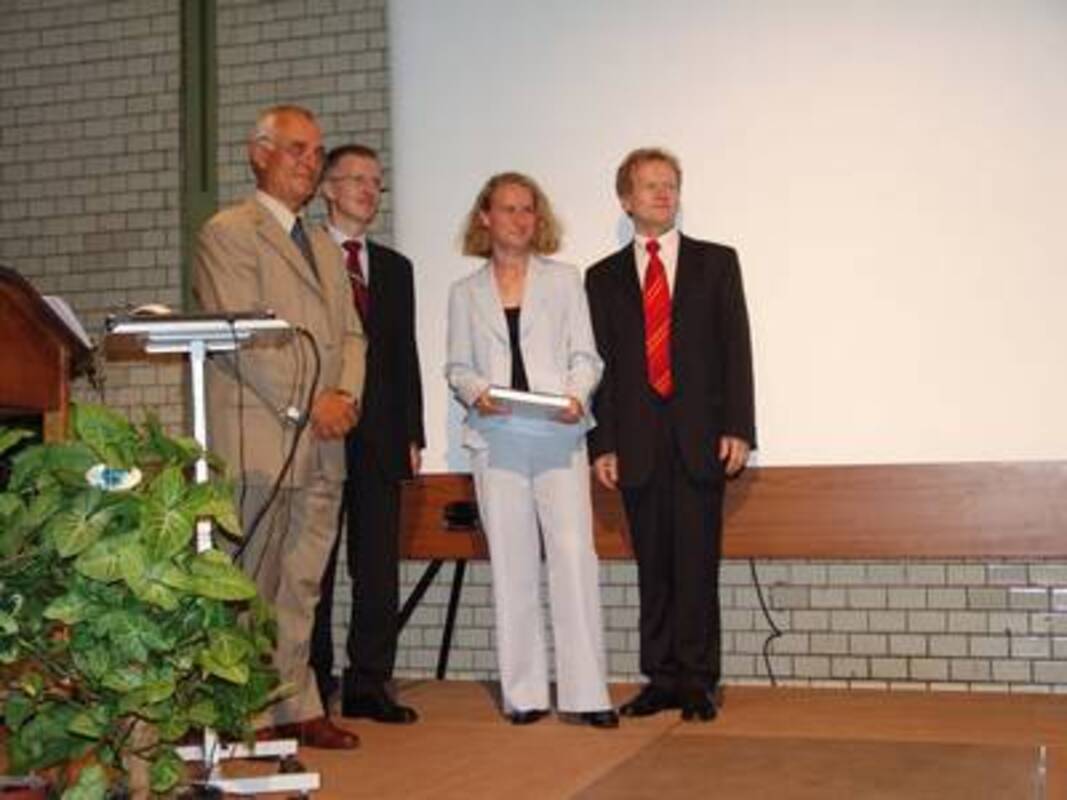 Der VDV-Landesvorsitzende Dieter Badstübner fühlte sich geehrt, Frau Dipl.-Ing. Marleen Klauke aus Niederlehme nahe Berlin mit einem Buchpreis auszuzeichnen. Frau Klauke hatte mit einer Gesamtnote von 1,3 das beste Ergebnis dieses Jahrgangs erzielt und nach Meinung des Fachbereiches zusammen mit ihrem Mitstreiter Andreas Tscherch die beste Diplomarbeit erstellt.