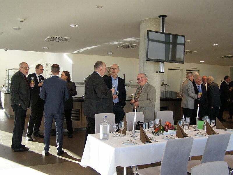 Im Restaurant des Hotels hatten die geladenen Gäste Gelegenheit, sich vor der offiziellen Veranstaltung bei einem Glas Sekt bekannt zu machen.