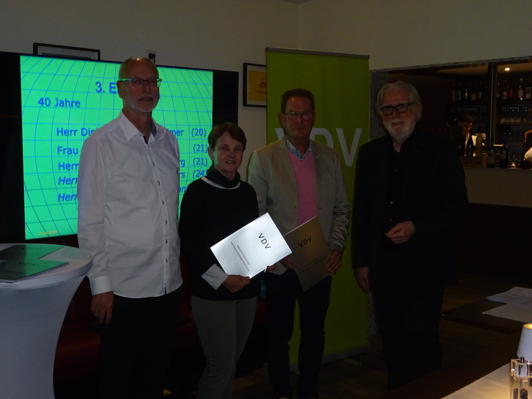 Für 50 Jahre im VDV wurden geehrt (eigentlich Jahr der Ehrung z.B. 2020): Dipl. Ing. Heinz-Dieter Roesler (2020) und Herr Dipl. Ing. Dieter Voigts (2021)