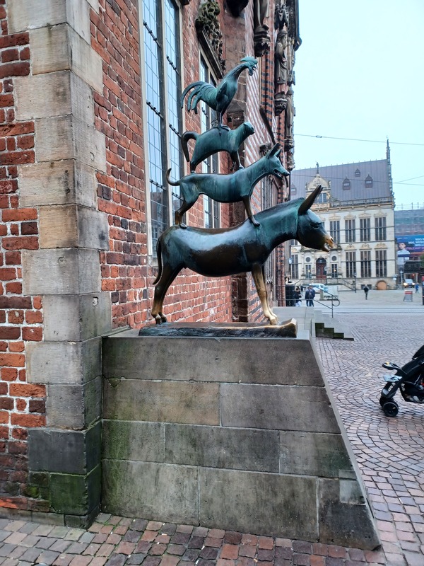Für das Objekt „Umgedrehte Kommode“, früherer Wasserspeicher, wurde ergänzend auch eine Fremdfirma mit Datenerfassung aus der Höhe per Drohnenfotos eingeschaltet (Bild Bremer Stadtmusikanten und die Schweinegruppe in der Sögestraße.)