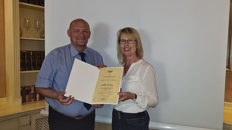 Eine Mitgliederversammlung beginnt traditionell mit den Ehrungen. Die Vorsitzende Monika Scheper überreichte Frau Annegret Tießen-Neumann für 50 Jahre Mitgliedschaft die silberne Verbandsnadel mit goldenem Kranz und Herrn Bernard Dolenga für 40 Jahre Mitgliedschaft die Urkunde und Verbandsnadel mit silbernem Kranz (siehe Foto).