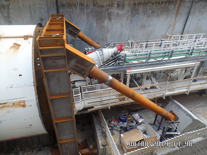 Bei unserem Besuch wurden wir zunächst von Mitarbeitern der ausführenden Baufirmen herzlich empfangen. Im Baubüro wurde uns zunächst das Bauprojekt im Allgemeinen vorgestellt und dann über den aktuellen Baufortschritt informiert. Danach ging es mit entsprechender Schutzkleidung ausgestattet über die Baustelle mit all ihren Einrichtungen und Gerätschaften (unter anderem eine Rettungskammer) zur 18 Meter tiefen Startbaugrube, in der die Tunnelvortriebsmaschine montiert wird. Zum Zeitpunkt unseres Besuches war die Endmontage fast abgeschlossen, so dass wir die Maschine nahezu komplett ausgiebig in Augenschein nehmen konnten. In diesem Zusammenhang war interessant zu erfahren, dass zwei Mitarbeiter der Herstellerfirma die Maschine ohne Montageplan also sozusagen "aus dem Kopf heraus" zusammenbauen.