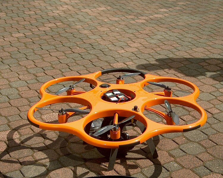 Nach dem beeindruckenden Vortrag konnten wir den bei TPI im Einsatz befindlichen Multikopter direkt in Augenschein nehmen. Es handelt sich hierbei um einen Hexakopter (sechs Rotoren) mit einem Flugkörper aus Carbon, einem Durchmesser von 1,05 Metern und einem Leergewicht von 3,4 kg. Das Gerät kann eine Flughöhe von bis zu 3000 Metern erreichen und die Akkus reichen für eine Flugzeit von bis zu 30 Minuten. Die Steuerung erfolgt vom Boden aus mittels GPS, Nick- und Neigebewegungen werden automatisch ausgeglichen. Interessant war zu erfahren, dass Mitarbeiter, die den Kopter bedienen wollen, eine einwöchige Piloten-Ausbildung absolvieren müssen; zudem müssen für den Geräteeinsatz Aufstiegsgenehmigungen vorhanden sein, wobei diese länderspezifisch sind. Das Gerät musste bei unserem Besuch aufgrund eines kleinen technischen Defektes leider am Boden bleiben, aber das tat der beeindruckenden Vorstellung keinen Abbruch.