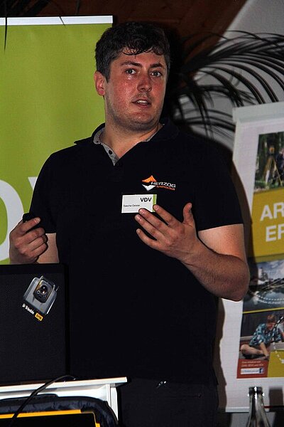 „Die Trimble SX10 Scanning Total Station“ war Thema des zweiten Vortrags von Sascha Geisler von der Fa. Herzog Systemtechnik, deren Standorte in Düsseldorf, Swisttal und Neu-Anspach liegen. Die Trimble SX10 Scanning Total Station ist eine neue Generation in der Messtechnik: Innovativ aufgrund der Kombination aus Laserscanning, einer Bildverarbeitung und hochgenauem Aufmaß, integriert in bestehende Arbeitsabläufe für Feld- und Bürosoftware und vielseitig, da nur eine Anschaffung. Diese Innovationen wie die Lightning 3DM Technologie, die verbesserte Trimble VISION, die hohe Geschwindigkeit der Scans (26.600 P/Sek.) und eine leistungsstarke Verarbeitungssoftware definieren die Vermessung neu. Aufgrund der traditionellen Arbeitsweise, der Steuerbarkeit mit der vorhandenen Trimble Access Software und der reibungslosen Nachverarbeitung aller Daten im Trimble Business Center schafft das System bekannte Arbeitsabläufe und Schnittstellen zu bedienen. Das Trimble SX10 System besteht aus dem Trimble SX10, dem Trimble 10 Tablet, dem Trimble TSC7, dem Trimble Access, einem Prismenstab und Zubehör, dem Trimble Business Center und dem Trimble RealWorks.