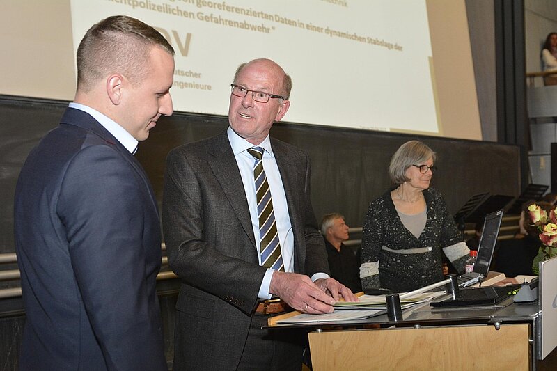 Im Rahmen einer feierlichen Abschlussveranstaltung verleiht der Landesvorsitzende Bernd Sack an Herrn Bachelor of Engineering Felix Herr für seine herausragende Abschlussarbeit mit der Note 1,1 den VDV-Preis Hessen.