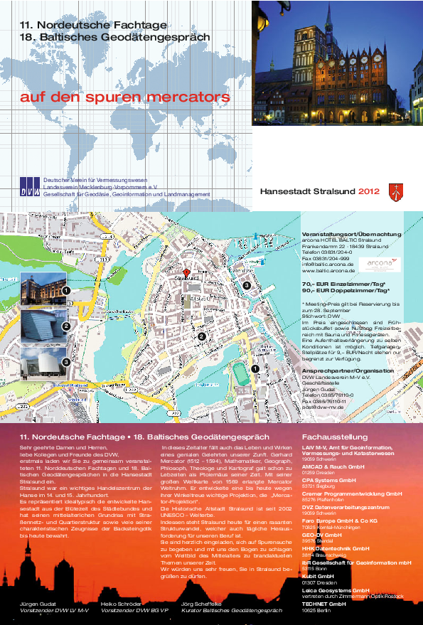 Das Motto „auf den spuren mercators“ der 11. Norddeutsche Fachtage bzw. 18. Baltische Geodätengespräche ist in diesem Jahr dem 500. Geburtstag von Gerhard Mercator gewidmet.