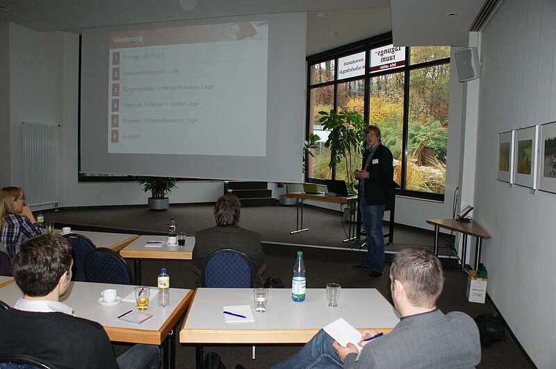 Im Tagungszentrum „unter.Bau“ am unterirdischen Zoo im Museum am Schölerberg wurde der Landesverbandstag am Samstag beginnend mit der Fortbildungsveranstaltung fortgesetzt. An die Begrüßung durch den stellvertretenden Landesvorsitzenden Michael Tschöke schlossen sich die Grußworte durch Herrn Prof. Dipl.-Ing. Klaus Kertscher vom DVW, Herrn Dipl.-Ing. Carsten Bruns vom BDVI sowie Herr Dipl.-Ing. Michael Rohardt als Vertreter der Ingenieurkammer Niedersachsen an. Mit direktem Blick in den Zoo wurden die Mitglieder am Vormittag durch Herrn Christian Wever von der TopScan GmbH über die aktuellen Einsatzmöglichkeiten des Airborne und Mobile Laserscanning informiert. Zweiter Themenschwerpunkt war der Vortrag von Herrn Frederik Hilling von der mit dem GeoBusiness Award 2009 ausgezeichneten Geoplex GmbH zum Thema Ableitung von interaktiven Solardachkatastern. Im Anschlussvortrag informierte Herr Michael Rohardt mit seinem Vortrag „kein Ding ohne ING“ sehr anschaulich über das Ansehen des Ingenieurs in der Öffentlichkeit sowie über die Vertretung der Interessen der Beschäftigten im Vermessungs- und Geoinformationsbereich durch die Kammern und Verbände.