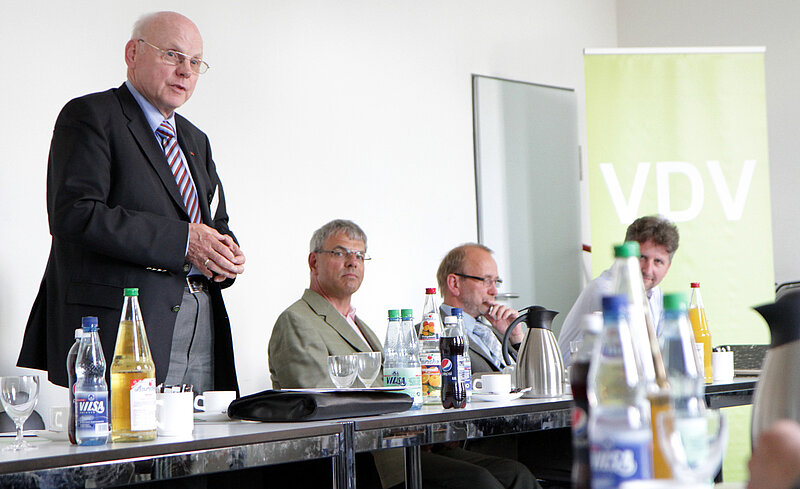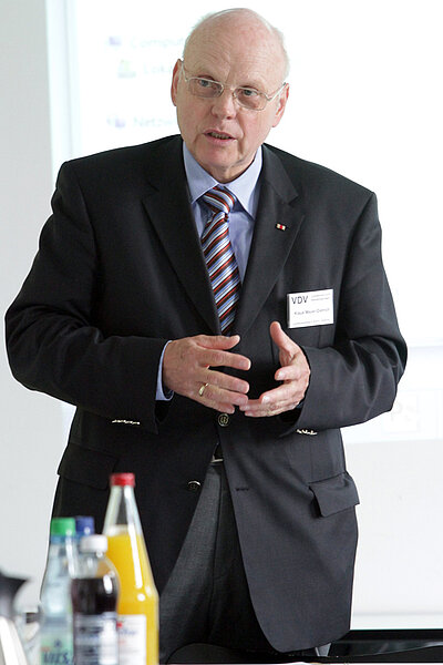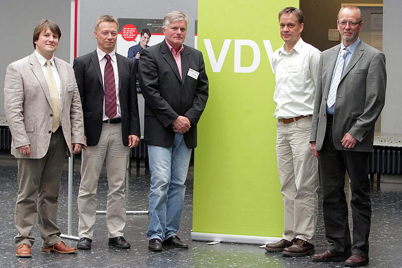 Nach der Begrüßung und den Grußworten wurde Herr M.Sc. Folkmar Bethmann für seine Masterarbeit „Entwicklung einer Monte-Carlo-Simulation zur Optimierung der 6DOFNavigation mit einem mikroskopintegrierten Einkamerasystem“ mit dem VDV-Preis 2012 durch den Vizepräsidenten Herrn Meyer-Dietrich ausgezeichnet.
