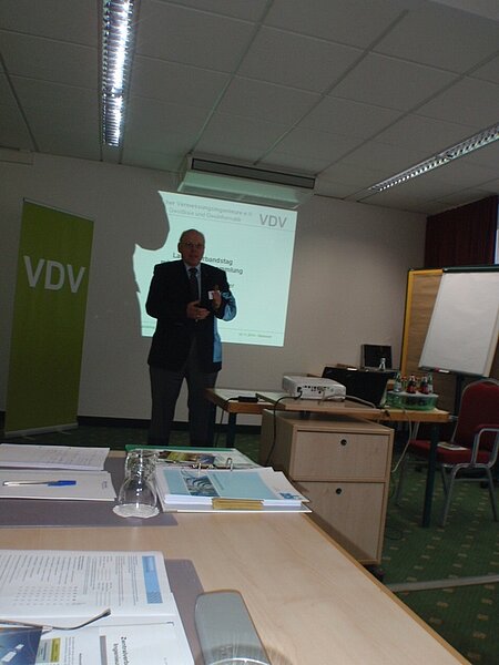 Der VDV-Vizepräsident Klaus Meyer-Dietrich übermittelte Grüße vom Präsidenten Dipl.-Ing. Wilfried Grunau, der als Gründungsmitglied des Landesverbandes Niedersachsen und ehemaliger Landesvorsitzender gern teilgenommen hätte, aber durch andere Termine leider gebunden war. Desweiteren übermittelte er Grüße vom Landesvorsitzenden Nordrhein-Westfalen Herrn Dipl.-Ing Ulf Meyer-Dietrich.