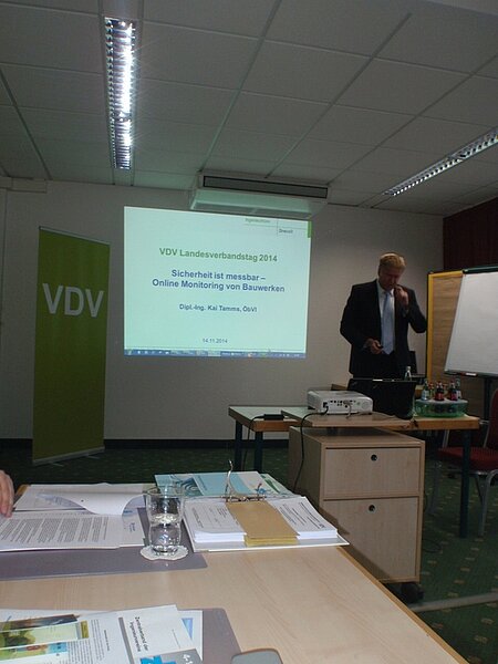 Vor Beginn seines Vortrages übermittelte Dipl.-Ing. Kai Tamms zunächst auch die Grußworte des Landesvorsitzenden des BDVI, Dipl.-Ing. Carsten Bruns, zum Landesverbandstag des VDV und hob wie die Vorredner die konstruktive Zusammenarbeit der Verbände hervor.