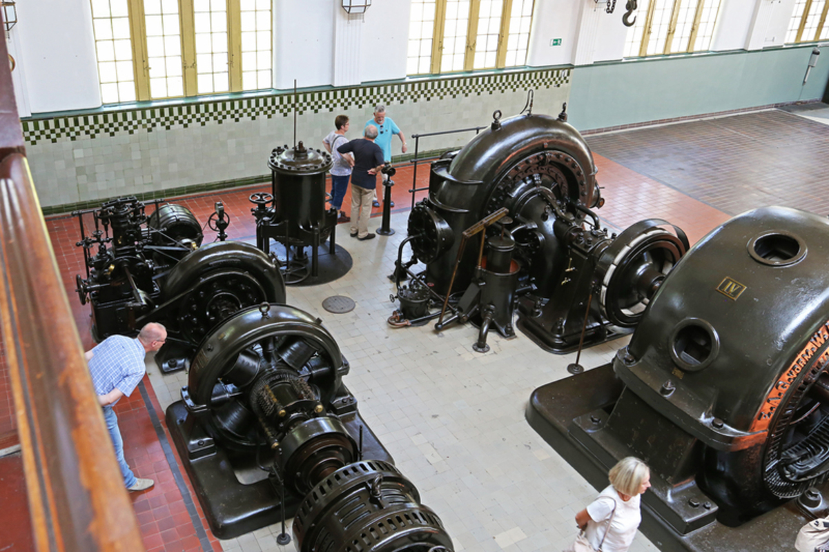 Zwei der historischen Turbinen sowie die Schaltanlagen waren beeindruckende Zeugnisse der Technik.