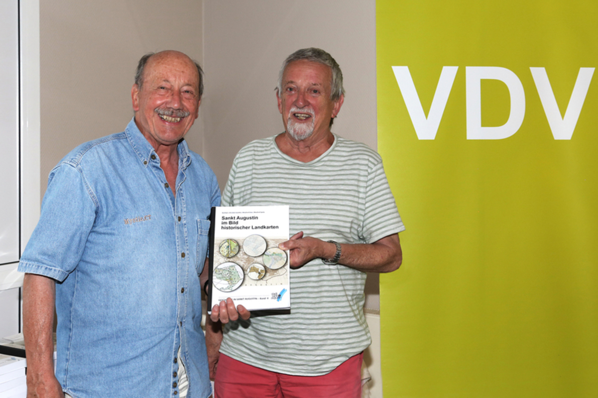 Diese Rechenoperation im Detail: Dank 3 x Vermessung und 1 x Geologie wurde nun das Buch „Sankt Augustin im Bild historischer Landkarten" mit 376 Seiten Umfang nach knapp 3 Jahren Recherchen vorgestellt. Von den vier Autoren waren Rolf Bull und Manfred Spata mit viel Bildmaterial zum Juli-Abend des VDV-Bonn erschienen.