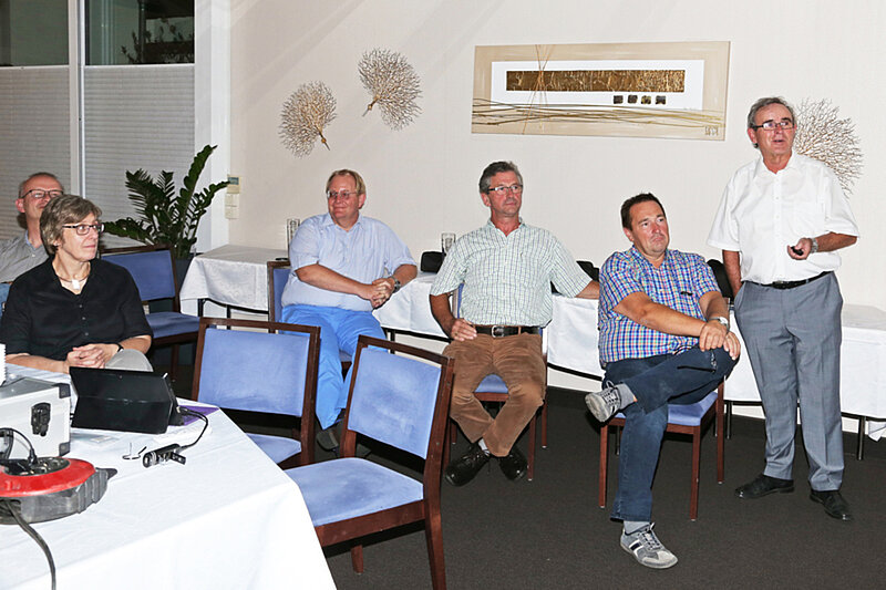 Eine ausführliche Diskussion schloss sich u. a. mit Marie-Theres Maurer, der Nachfolgerin des Referenten im Arbeitsfeld Liegenschaftsbetreuung/-dokumentation und mit Klaus Lohde, der zuletzt im Bereich Liegenschaften/Grunderwerb tätig war und ebenso mit dem Thema sehr vertraut war, dem Referat an.