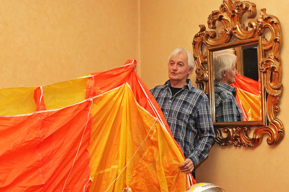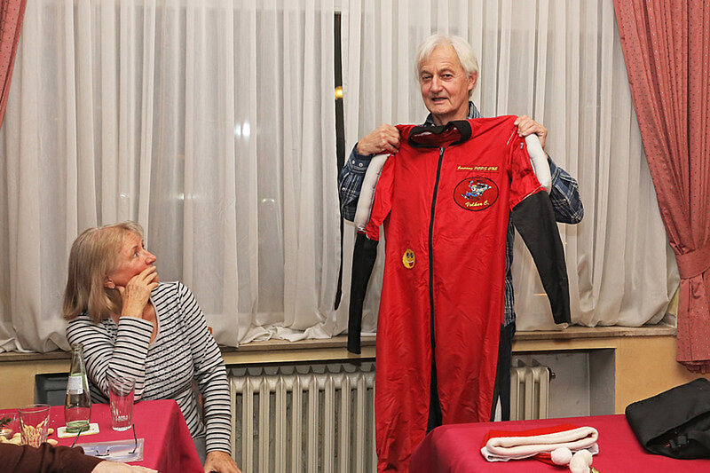 Zur Überraschung der Zuhörer packte Volker Cornils dann seinen Fallschirm aus und wir, das Fußvolk, durften ihn dann anfassen und begutachten.