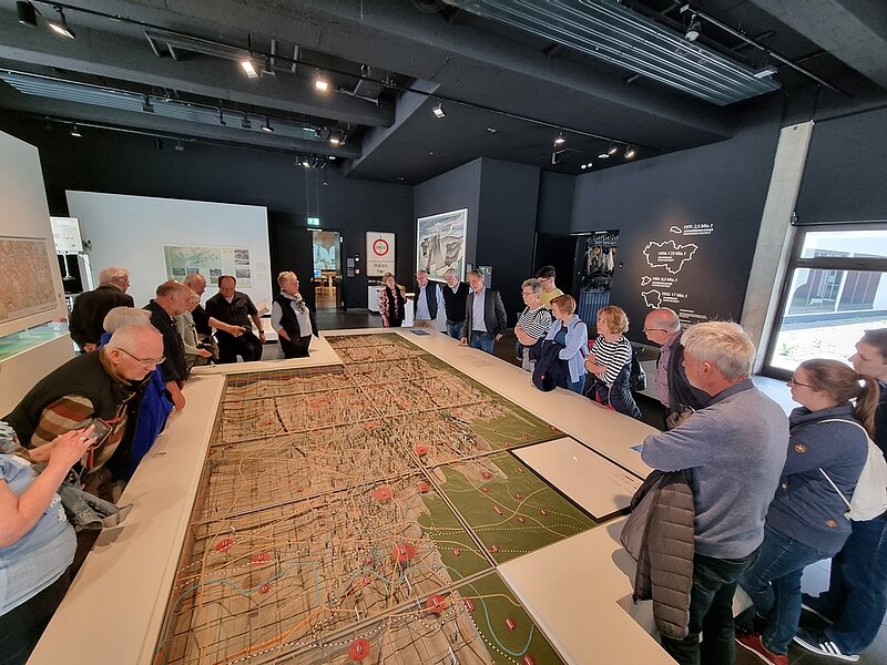 Nach einem freien Gang durch die Ausstellungsräume „Steinkohle, Motor der Industrialisierung“ mit interessanten Erläuterungen zum Museumsumbau in den 2000er Jahren wurde die interessierte Ingenieurgruppe zum Herzstück des Museums geführt. Über sonst nicht zugängige Stufen ging es in den Bereich des Anschauungsbergwerks untertage. Mit sachkundiger Erläuterung durch Dr. Müller zum bergmännischen Vortrieb des Anschauungsbergwerks und seiner Erweiterung nach der ersten Bauphase sowie der Ausgestaltung des Ausbaus führte er uns durch den sehr authentischen Untertagebereich. Auch die Problematiken mit Grundwasser und Abständen zu alten Abbaugebieten wurden anschaulich beschrieben. Nun durften man das neusten Museumshighlight dem Seilfahrtsimulator besteigen. Gefühlt ging es mehrere 100m in die Tiefe, begleitet von Bergleuten und einer Prise Schnupftabak in die Hitze der untersten Sohle. Nach so viel Fachprogramm hatte man sich eine besondere Pause in der Steigerstube mit angrenzender Kollefott, heute auch Außenstelle des Standesamts, des Museums bei Kaffee und Kuchen verdient. Es stimmt demnach, dass man in Bochum Untertage heiraten kann.