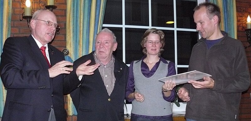 Vor dem Essen wurde Dipl.-Ing. Eckhard Tinter für seine 50-jährige Mitgliedschaft im VDV durch den Vizepräsidenten Klaus Meyer-Dietrich und den Landesvorsitzenden Karsten Muth geehrt. Eckhard Tinter war selbst 26 Jahre Vorsitzender des Bezirks Dortmund und ist heute noch an der Vorstandsarbeit beteiligt. Besonders für seinen Einsatz um die Aktivitäten der Arbeitsgemeinschaft Technisch-Wissenschaftlicher Vereine- Dortmund (ATWV) ist der Vorstand ihm sehr dankbar. Für seine langjährige gute Arbeit im Bezirk bedankt sich der Bezirksvorstand recht herzlich. Auf seinen Wunsch fand die Ehrung im Rahmen der Herbstwanderung statt. „Im Kreise der Dortmunder Kollegen und Kolleginnen fühle ich mich wohl“ so Eckhard Tinter.