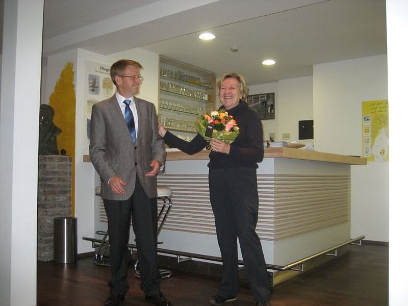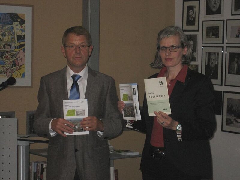 Der VDV-Bezirk Düsseldorf hat am 20. Oktober 2011 in einem besonders schönem Umfeld, dem Lesesaal mit Literatur-Cafè im Geburtshaus von Heinrich Heine, auf sein 60-jähriges Bestehen (Gründungsversammlung am 11. Oktober 1951) zurückschauen können. Der Bezirksvorsitzende Gerhard Vaupel begrüßte die 42 Kolleginnen, Kollegen und Gäste zu diesem Anlass mit einem herzlichen Willkommen und betonte, dass er ihre Anwesenheit außerordentlich zu schätzen weiß. Er fand auch Gefallen daran, wie zum Empfang (mit Kaffee und Kuchen, Blumendekoration in formschönen Buntglasvasen) die Festgesellschaft schon lebhaft im Gange war. Ganz besonders hieß er Regierungsvermessungsdirektorin Martina Tennagels von der Bezirksregierung Düsseldorf als Ehrengast willkommen. Ebenso Herrn VDV-Bundesgeschäftsführer und stellvertretender Landesvorsitzender Burkhard Kreuter, für den Düsseldorf seit vielen Jahren immer eine Reise wert ist und Herrn VDV-Schriftführer in NRW Jörg Berchter. Herrn Prof. Dr. Ing. Hans Fröhlich wurde mit der Aussicht auf seinen heutigen Festvortrag mit viel Vorfreude begrüßt.