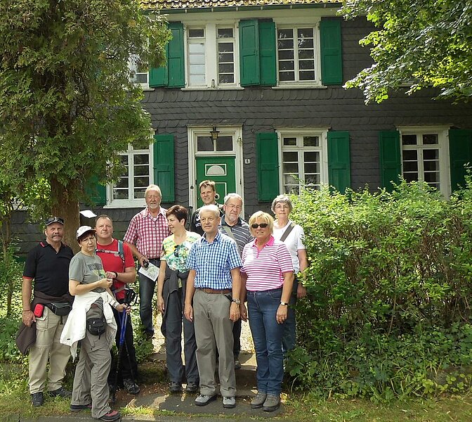 Vom alten Schloßturm zu Schöller wanderten wir auf kleinen Pfaden vorbei an einer Wassermühle in Richtung Gruiten, das in seinem schmucken Dorfkern mit etwa 40 denkmalgeschützten Fachwerkhäusern aufwartete. Weiter der Düssel folgend wiesen Informationstafeln auf den Beginn des Naturschutzgebietes ‚Neandertal‘ hin. Ein Schild ‚Gaststätte‘ führte uns ‚Zum Kühlen Grunde’, dessen Wirtsleute eine bodenständige Küche anbieten. Bei Tisch gab es Gelegenheit, über das ‚Draußen sein‘ in einer üppigen Natur zu resümieren und Benzenberg, besonders seine Leistungen als Geodät, zu würdigen. Der verbleibende Weg zum Startpunkt S-Bahnhof Gruiten betrug noch gut einen Kilometer. Es war zu schaffen, bilanzierte die Wandergruppe nach insgesamt 17 Kilometern glücklich.