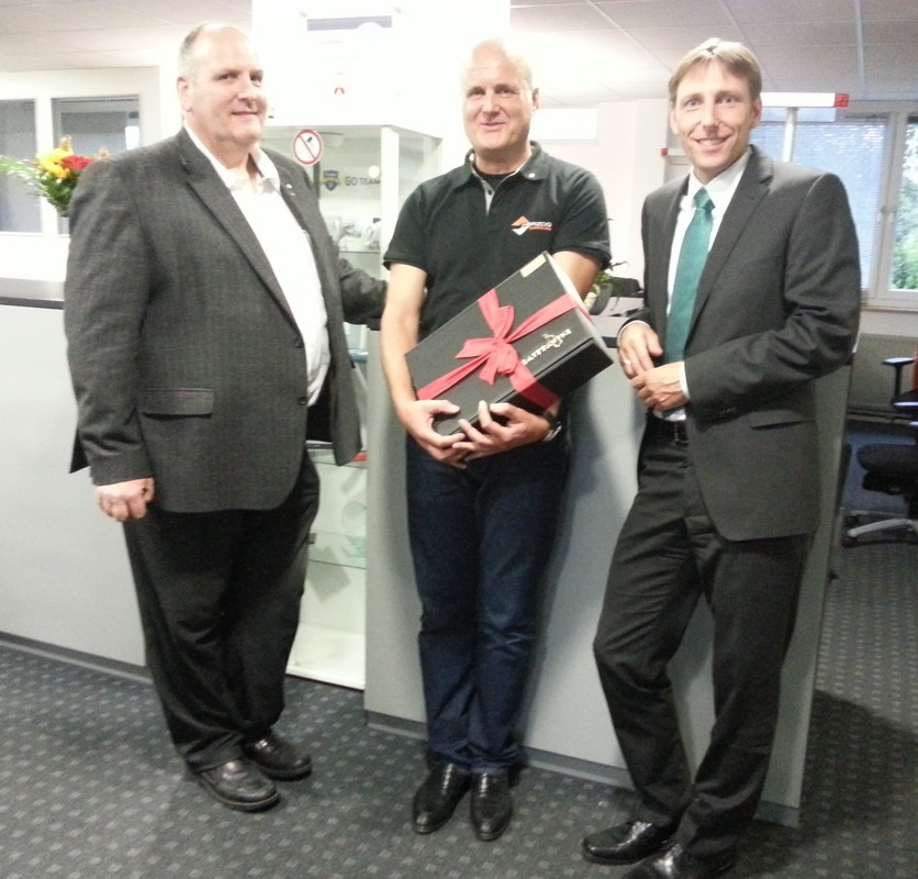 Der NRW-Landesvorsitzende Ulf Meyer-Dietrich ehrte im Beisein von Bundesgeschäftsführer Burkhard Kreuter den Kollegen Heinz Grundhoff mit der Übergabe der Urkunde und der Verleihung der silbernen Verbandsnadel mit goldenem Kranz für seine 50-jährige Treue zu unserem Berufsverband und Sebastian Herzog (Herzog Systemtechnik GmbH) für seine 25-jährige Treue. Dabei schloss er auch die heute leider verhinderten Jubilare mit ein: Kollege Bernd Kastenholz (musste unterwegs zur Ehrung umkehren) ist 50 Jahre Mitglied in unserem Berufsverband, Kollege Ulrich Schuck (familiärer Termin) hat die 25-jährige Mitgliedschaft erreicht. Die Verbandsnadeln und die Urkunden als Anerkennung für ihre langjährige Treue zu unserem Berufsverband wurden per Post zugesandt.