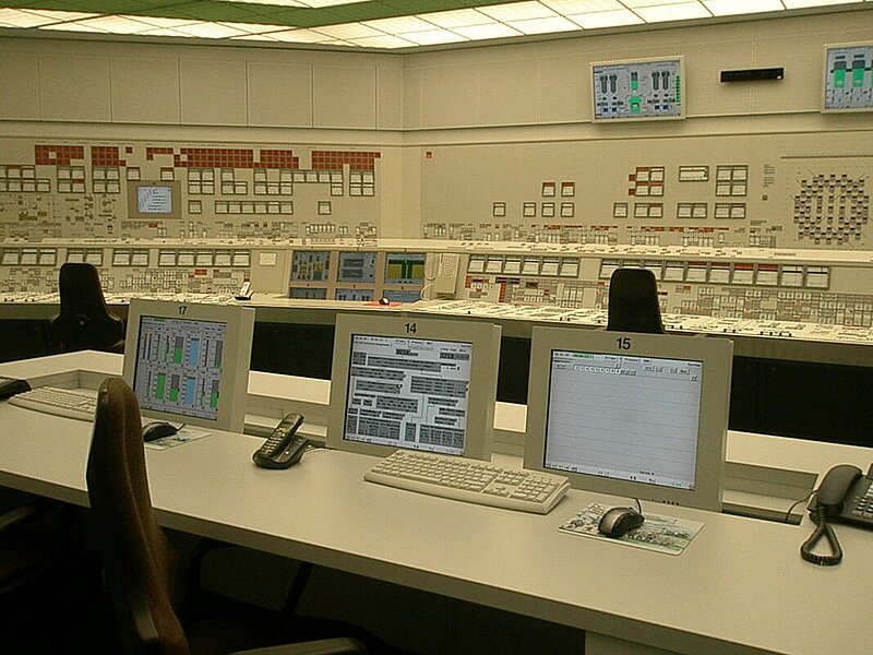 Nach dieser geballten Information führte uns Herr Talleur quer durchs mit Sicherheitsschleusen versehene Gebäude in eine Schulungswarte. Die Mitarbeiter bzw. „Schüler“ hatten bereits Feierabend. Leider blieb es auch hier bei der Theorie - tlw. werden bei Führungen auch Simulationen an den Schalttafeln und -pulten vorgetragen - , so dass mehr Fragen beantwortet werden konnten. So erfuhren wir z. B., dass die Gesamtanlage eines KKW im Wesentlichen aus 4 Gebäudekomplexen besteht: dem Reaktorgebäude, dem Maschinenhaus, dem Schaltanlagengebäude und der Kraftwerkswarte, wie bereits erwähnt, in der wir jetzt stehen. Wenn man die Vielzahl der Schalttafeln, -pulte, Monitore, Reaktorschutztafeln, Steuerungs- und Informationseinrichtungen, optischen und akustischen Signale sieht und hört, und die es zu beherrschen gilt, begreift man erst so richtig, wie sehr den Verantwortlichen eine hochqualifizierte Ausbildung wichtig ist. Wegen der erforderlichen sehr hohen Sicherheit der Kraftwerksführung setzt also die Bundesregierung für das Schulungszentrum immense Summen Geldes ein. Neuerungen in den Realanlagen werden auch auf die Schulungssysteme - also den Simulatoren - übertragen… soweit die finanziellen Mittel zur Verfügung stehen. Auch in der Realanlage spielt die Warte eine zentrale Rolle. Noch kurz den „Störfallentscheidungsbaum“ - eine Analysehilfe - erklärend, treibt uns Herr Talleur zur fortgeschrittenen Stunde wieder durchs Gebäude.