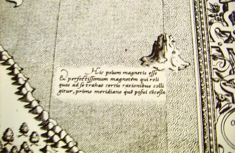 Dass sich ein bedeutender Renaissance-Gelehrter, der auch noch der Reformation nahe stand, auf Konfliktkurs mit der katholischen Kirche bewegte, ist systembedingt. Etwas skurril mutet es aber an, was letztlich die Inquisition auf den Plan rief. Stein des Anstoßes war die Darstellung des magnetischen Erdpols auf einer Weltkarte, siehe Bild 2.