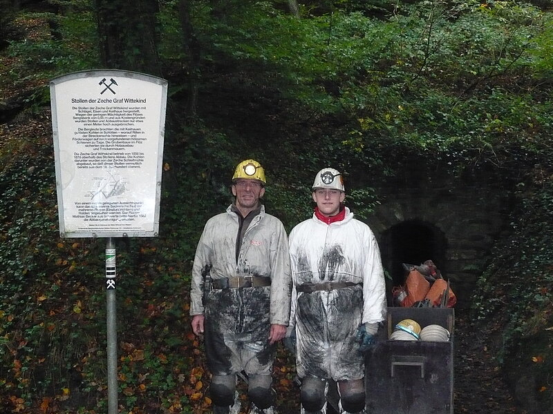 Am 12.10.2013 hatte der Bezirk Hagen zur Befahrung des Besucherbergwerkes Graf Wittekind eingeladen. Die Mutung (Antrag auf die Genehmigung des Bergbaus) wurde 1858 für das Bergwerks Graf Wittekund beantragt. Ab 1886 wurde Steinkohle im Stollenabbau gefördert und die höchste Jahresförderleistung von 609 t hat man im Jahre 1873 mit 5 Stollen erreicht. Vor 1900 wurde das Bergwerk aufgrund Unwirtschaftlichkeit stillgelegt. Die geförderten Kohlen aus Flöz Sengsbank (Mächtigkeit ca. 55 cm) wurden per Hand gewonnen und in den Kalköfen und Schmieden südlich der Ruhr eingesetzt. Der älteste Bergbau am Syberg geht auf das 16. Jahrhundert zurück.