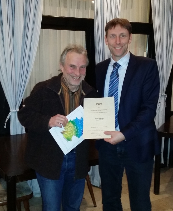 Da die Mitglieder, die an diesem Abend geehrt werden sollten, leider verhindert waren, wurde eine schon etwas länger zurückliegende Ehrung offiziell nachgeholt. Klaus Fähser wurde für seine 25-jährige Mitgliedschaft vom Landesvorsitzenden Ulf Meyer-Dietrich geehrt. Dieser bedankte sich bei Klaus Fähser besonders für die langjährige Mitarbeit in verschiedenen Vorstandsämtern des VDV-Bezirks Hagen.
