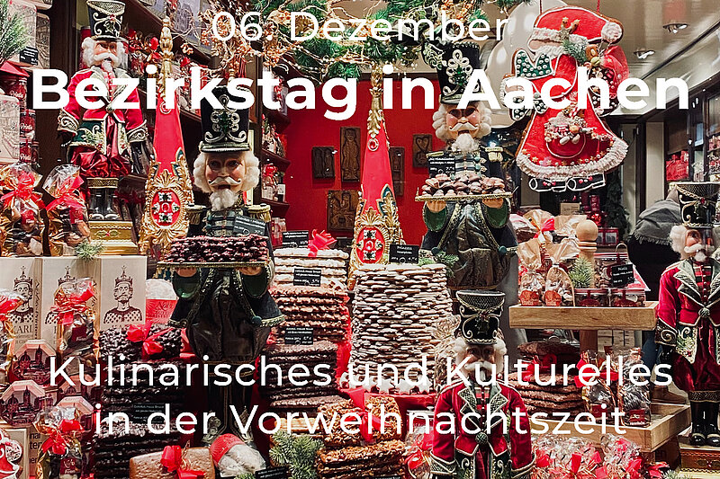 Unter diesem Motto lädt der Bezirk Köln/Aachen zu seinen diesjährigen „Bezirkstag in Aachen“ ein. In den Vormittagsstunden ist die Möglichkeit zum Einkauf von Printen, Spekulatius, Schokolade u. ä. bei den Werken Kinkartz und Lindt vorgesehen. Um 13.00 Uhr besuchen wir das Internationale Zeitungsmuseum, Pontstraße 13; in einem der ältesten Wohnhäuser Aachens repräsentiert das Museum im Rahmen der Route Charlemagne das Thema „Medien“ von gestern und heute, u. a. mit einer weltweit einmaligen Sammlung historischer Zeitungen. Ab ca. 16.00 Uhr bummeln wir über den Weihnachtsmarkt rund um Dom und Rathaus, hier wird der obligatorische Glühwein uns ein wenig verwöhnen. Gegen 18.30 Uhr wollen wir den Tag mit einem gemeinsamen Abendessen im Restaurant Verano, Komphausbadstraße 40, 52062 Aachen, ausklingen lassen.