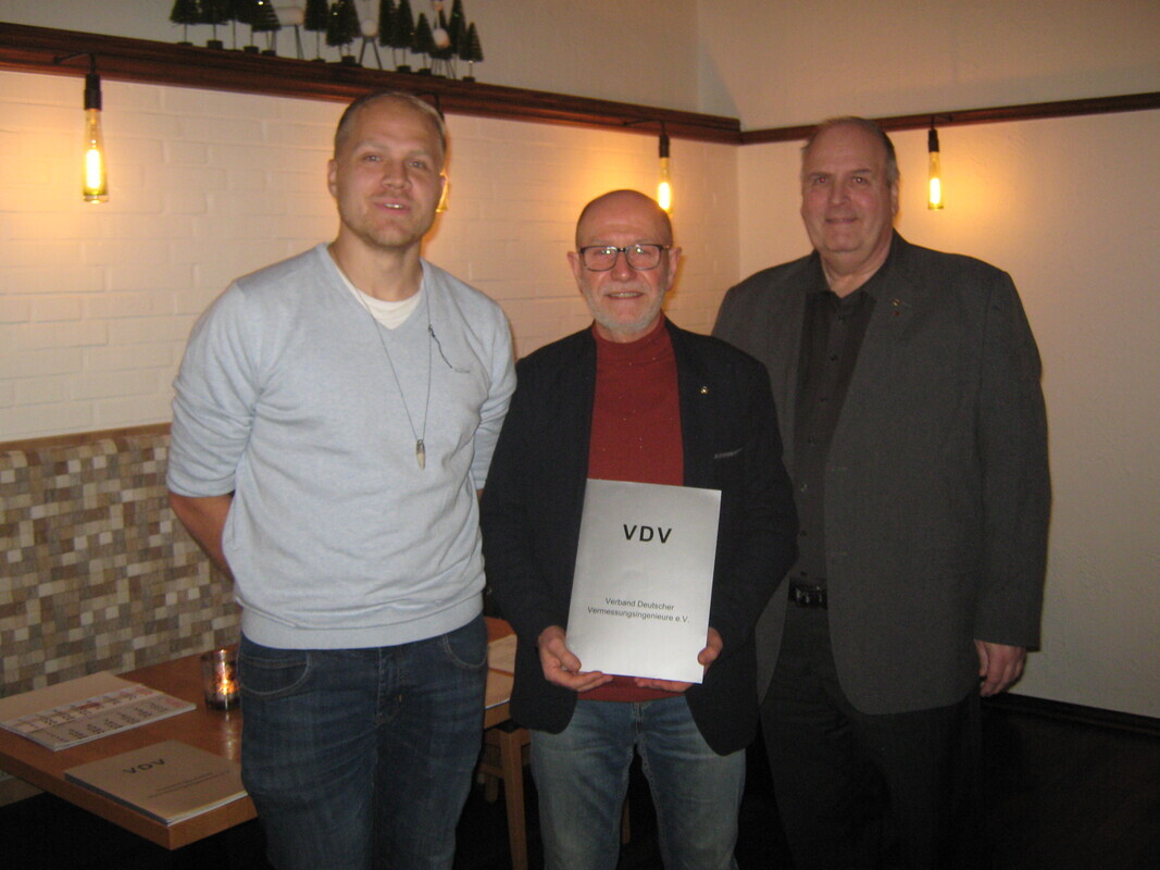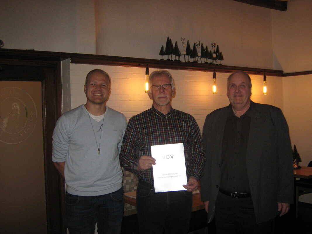 Die Veranstaltung begann mit der Jubilarehrung. Dabei konnten die Kollegen Georg Kruse aus Gelsenkirchen und Hans Gondzik aus Marl für jeweils 50 Jahre Verbandszugehörigkeit geehrt werden. Sie erhielten aus den Händen von Burkhard Kreuter die Urkunde und die silberne Verbandsnadel mit goldenem Eichenkranz.