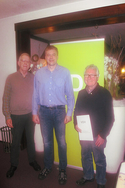 Für 50 Jahre Mitgliedschaft im VDV wurde der wiedergewählte langjährige Kassenverwalter Erwin Dietrich mit der Dankesurkunde und Nadel geehrt. Die nicht anwesenden zu ehrenden VDV-Mitglieder erhalten ihre Urkunden per Post.