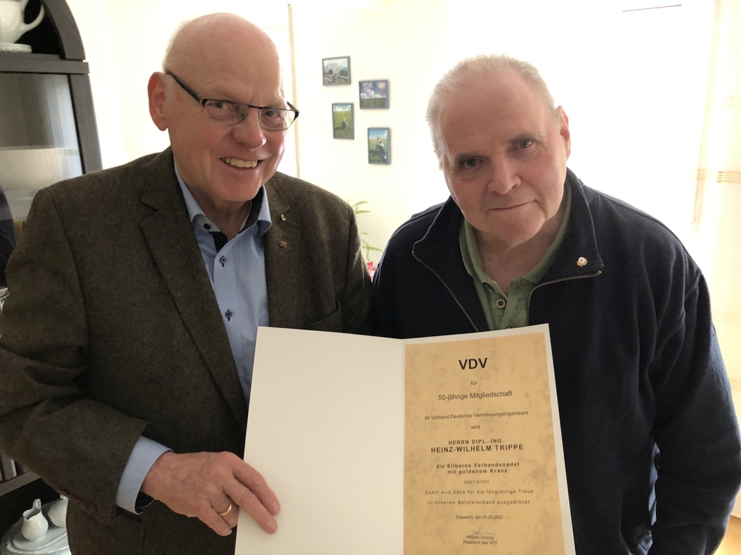 Ein besonderes Jubiläum konnte Heinz-Wilhelm (Willi) Trippe im Herbst des vergangenen Jahres feiern. Der 70. Geburtstag und seine 50-jährige Mitgliedschaft im VDV fielen fast zusammen. Das war Anlass des Ehren-Landesvorsitzenden Klaus Meyer-Dietrich und des Bezirksvorsitzenden Ulf Meyer-Dietrich ihn zu besuchen und die Ehrung mit Übergabe der Urkunde und der silbernen Ehrennadel mit goldenem Kranz gebührend vorzunehmen.