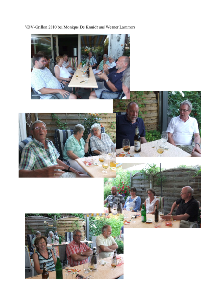 Wie in jedem Jahr war auch 2010 das Sommergrillen wieder ein fester Bestandteil im Kalender des VDV-Bezirk Soest. Bei idealem Wetter und dank der hervorragenden Gastfreundschaft von Monique De Knuidt und Werner Lammers bleibt der geselige und fröhliche Abend allen in guter Erinnerung. Es konnten wieder neben einigen fachlichen Diskussionen auch viele persönliche Gespräche geführt werden.
