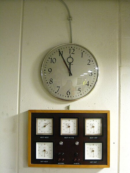 Nach einem ausgiebigen Frühstück im Hotel "Kölner Hof" wurde die Heimfahrt angetreten. Diese führte aber zunächst über die Gemeinde Mahlberg (ehemalige VDV-Bildungsstätte) und dem Radioteleskop Effelsberg (Durchmesser 100 bis 110m und 29 Jahre das größte bewegliche Radioteleskop der Erde) nach Bad Neuenahr-Ahrweiler, wo die Dokumentationsstätte „Regierungsbunker“ unter der Führung von Herrn Unternbäumen besichtigt wurde. Gebaut in der Zeit des Kalten Krieges, kam der Bunkeranlage des Bundes die Aufgabe zu, im Kriegs- und Krisenfall die Regierung aufzunehmen. Von hier sollte sie geschützt und von der Hauptstadt abgesetzt ihre Arbeit fortsetzen. Mit dem Fall des Eisernen Vorhanges wurde dieser Ausweichsitz nicht mehr gebraucht und aufgegeben. Schon die Bundeskanzler Helmut Schmidt und Ludwig Erhardt sowie Bundesminister, Staatssekretäre und bekannte und weniger bekannte Größen der Politik gingen dort über die Flure. Das riesige Tunnellabyrinth an der Ahr mit seiner urbanen Ausstrahlungskraft ist ein gedankliches Abbild der realen Angst vor dem Atomkrieg der 60er Jahre aus Beton und reichlich Technik. Alle noch hängenden Uhren in der Bunkeranlage zeigen symbolisch die damalige Zeit von “ 5 vor 12 “ an. Ein ausführlicher Bericht der Dokumentationsstätte Regierungsbunker ist von den Kollegen des Bezirkes Bonn im VDVmagazin 5/2009 erschienen.