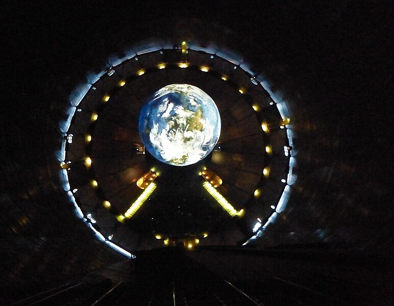 Der Höhepunkt dieser Ausstellung ist zweifelsohne eine monumentale Skulptur der Erde, die im Luftraum des Gasometers aufgehangen ist und einen Durchmesser von 20 Meter aufweist. Sie gibt uns die Möglichkeit, die Erde aus den Augen der Astronauten zu sehen.