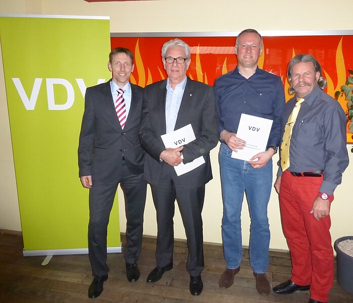 Als ehrende Mitglieder waren die Herren Franz Leinfelder und Andreas Biermann anwesend. Der Landesvorsitzende Ulf Meyer-Dietrich übernahm sehr gerne die Ehrung der Kollegen. Herr Leinfelder wurde für 50 Jahre und Herr Biermann für 25 Jahre Mitgliedschaft im VDV geehrt. Beide berichteten, wie sie für den VDV geworben wurden und wie sie für sich die Vorteile des VDV in ihrer langjährigen Mitgliedschaft erleben durften.