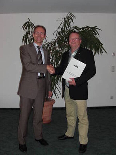 Heinz-Dieter Bertram wurde für sein langjähriges Engagement für den VDV ausgezeichnet. Seit dem 1. Januar 1968 gehört er dem VDV an und ist seit 1987 als Vorsitzender des Bezirks Bergisch-Land unermüdlich im Einsatz. Dabei hat er in vorderster Front viele Fach- und Informationsveranstaltungen organisiert.