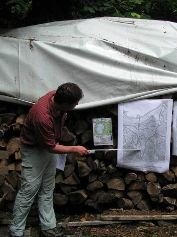 Gut gestärkt informierte man sich zum Abschluss in angenehm schattiger Umgebung über eine mittelalterliche Ingenieurleistung, welche nördlich der Alpen ihresgleichen sucht. Der um 1164 am Südende des Laacher Sees in der Schachtbauweise errichtete und rund 880 m lange Fulbert-Stollen diente den Mönchen des Klosters Maria Laach zur Pegelsenkung des Sees, wodurch die Klosteranlage vor Hochwasser geschützt und Ackerland gewonnen wurde. Innerhalb eines trocknen Sommers - der Bau konnte nur bei einem niedrigen Seepegel erfolgen - huben die Benediktiner der Abtei Maria Laach rund 5000m3 Material zur Schaffung des künstlichen Seeabflusses aus.