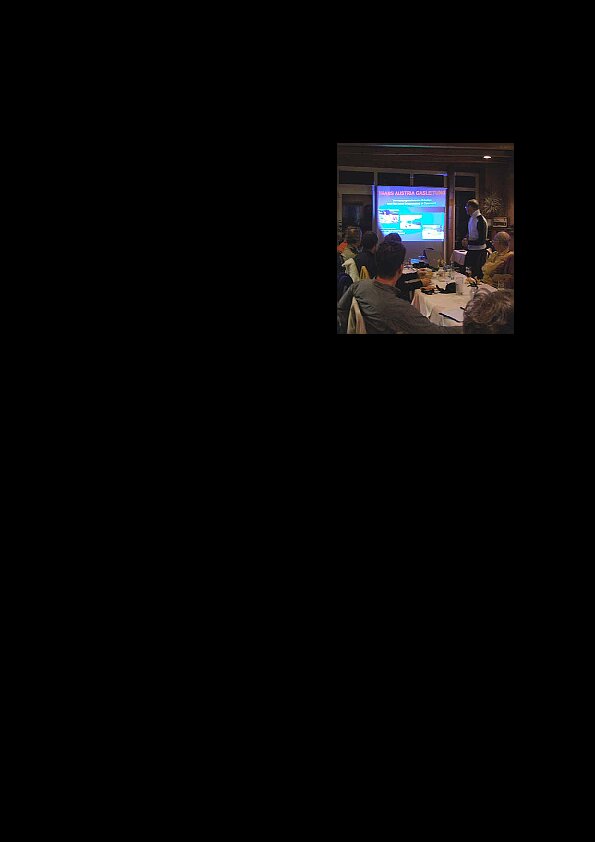 Zur Freude der Organisatoren und des Referenten war die erste Veranstaltung des VDV - Bezirks Koblenz im Jahr 2006 sehr gut besucht. Im neuen Treffpunkt, dem Hotel Berghof in Koblenz Asterstein, verfolgten rund 20 Kolleginnen und Kollegen, darunter auch Studentinnen und Studenten der FH Mainz, gespannt den Vortrag des Referenten, der im vergangenen Jahr für die Dauer von 4 Monaten die Tiefbauarbeiten beim Bau des dritten Stranges der Trans Austria Gasleitung (TAG) vermessungstechnisch begleitete ...