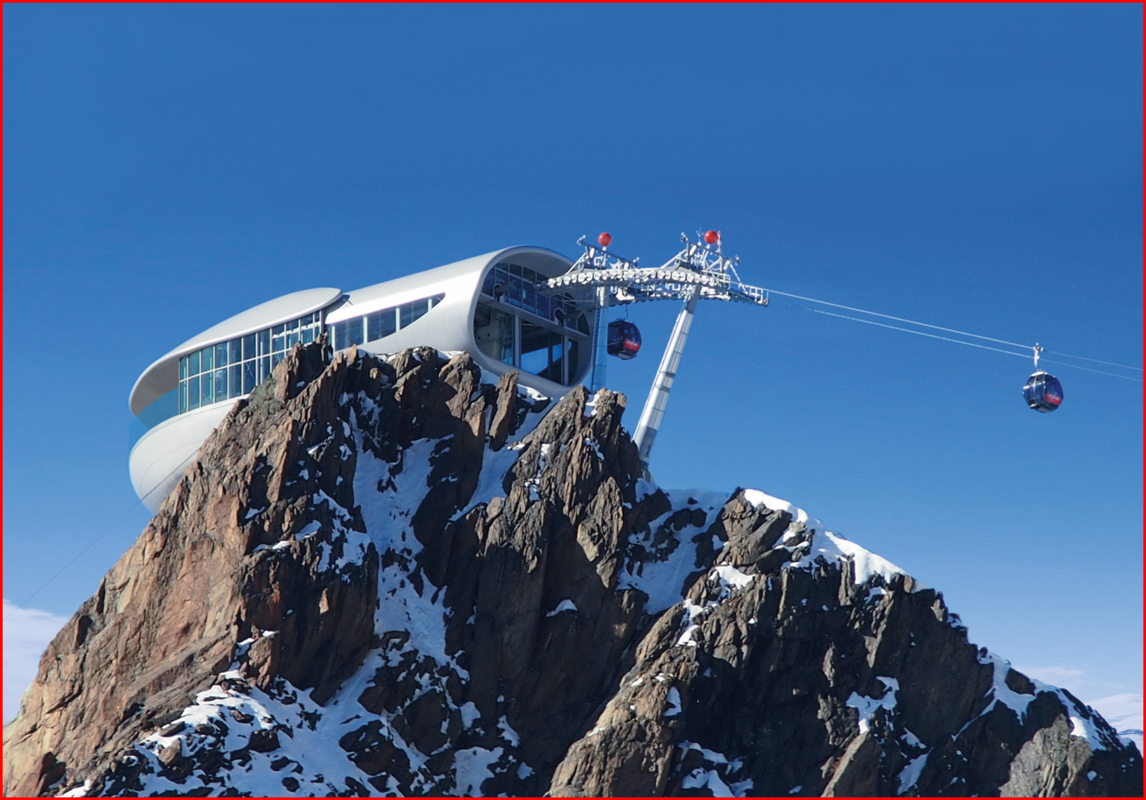 Innerhalb von 6 Monaten wurde auf 2.800 m eine neue Tal- und auf 3.440 m eine neue Bergstation für die Wildspitzbahn errichtet. Ein paar kleine Fakten dazu: Die tägliche Anfahrt zur Baustelle betrug je nach Wetter und Transportkapazität mit Lift, Pistenraupe oder ATV 1 - 2 Stunden. Schneeeinbrüche mit Minusgraden bis in den August hinein erschwerten die Arbeiten und die Baustelle war so klein, dass Container, Minibagger und anderes Baugerät nicht drumherum weggefahren werden konnten, sondern mit dem Kran umgesetzt werden mussten, wenn Sie im Weg standen.