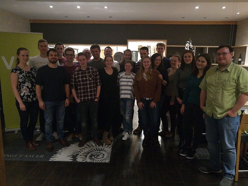 Zu Beginn der Vorweihnachtszeit organisiert die Fachschaft eine Weinprobe im Weingut Sauer in Zusammenarbeit mit dem VDV Landesverband Rheinland-Pfalz. Dies ist seit einigen Jahren eine liebgewonnene Tradition, die gerne und zahlreich von Studierenden als auch von VDV-Vertretern besucht wird. Wegen der hohen Nachfrage werden seit einem Jahr direkt zwei Weinproben veranstaltet. Diese waren am 14. und 21. November 2019. Insgesamt trafen sich rund 40 Studierende mit dem VDV zu einem gemütlichen Austausch im Wein- und Sektgut Sauer in Bodenheim.