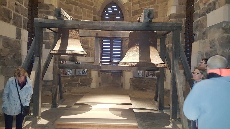 durch einen der fünf Türme des Marktes der Stadt Halle, den Roten Turm, statt.
