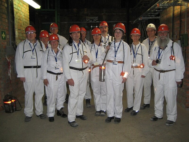 Am 25.04.12 besuchte eine kleine Gruppe des VDV-Bezirks Magdeburg das geplante Endlager Morsleben. Es sind etwa 40000 m3 schwach bis mittelradioaktive Stoffe eingelagert. Seid 1998 sind keine weiteren Stoffe mehr eingelagert worden und ebenso lange wird auf die Genehmigung als Endlager des Salzstockes Morsleben gewartet. Das Wort „Radioaktivität“ sorgt immer für Unbehagen. Die radioaktive Strahlung war, ist und bleibt gefährlich mag sie auch noch so schwach sein. Die Dauer der Gefährdung erreicht geologische Dimensionen, so hat es nicht überrascht, dass in einer Simulation die Wirkung einer neuen Eiszeit auf die geplante Endlagerstätte aufgezeigt wurde. In einem einführenden Vortag stellte sich Frau Reinecke vom Bundesamt für Strahlenschutz (BfS) den kritischen Fragen der VDV-Gruppe. Im Anschluss passierten wir die Sicherheitsschleuse zum Schacht, welche durchaus mit der Sicherheitsschleuse im Flughafen vergleichbar ist. Es folgte die bergmännische Einkleidung und die Seilfahrt. Im Salzstock selbst wurden wir vom Markscheider Herrn Osbelt geführt. Die beeindruckenden freitragenden Gewölbe des Salzstockes werden mit einem Laserscanner erfasst. Die Besonderheiten des Nivellierens unter Tage wurden erläutert. Auch die Überwachung des geologisch stabilen Salzstockes im Querschnitt mittels Invarband mit angeschlossener Elektronik wurde ausführlich erklärt. Ebenso konnten wir schweres Abbaugerät beim Vortrieb im Salzstock beobachten. Nach zwei Stunden endete die ausführliche und fachmännisch begleitete Führung unter Tage. Nachdem wir wieder „zivil“ gekleidet waren, konnten wir beim Mittagessen weiter diskutieren. Anzumerken bleibt das die rundum bestens organisierte Besichtung und das Rahmenprogramm komplett kostenfrei war.