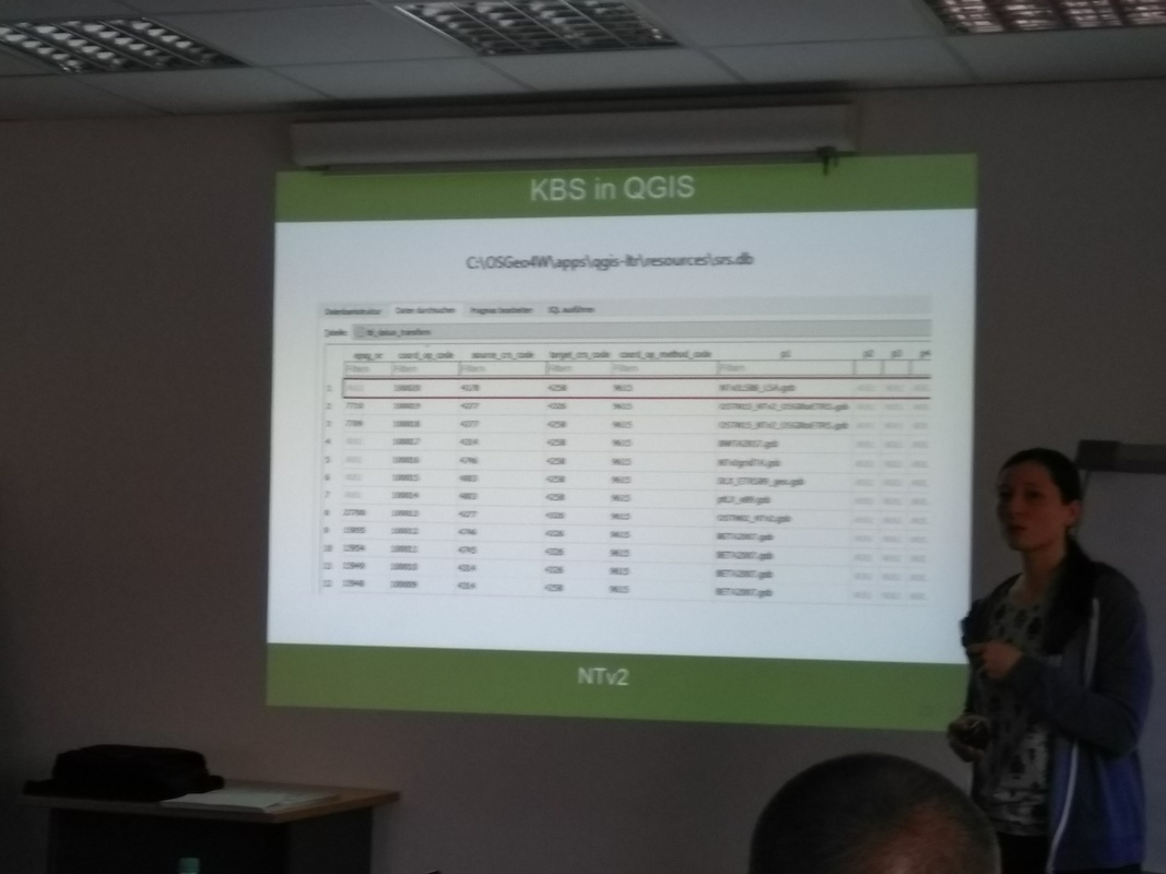 Eröffnet wurde der Vortragsabend durch Frau Eisold. Sie ist bei der Gesellschaft für Informationstechnologie mbH (GFI) beschäftigt und führt in ihrem beruflichen Alltag unter anderem QGIS Schulungen durch. Ihr Themenschwerpunkt waren Neuerungen die sich mit der Einführung der QGIS Version 3.* ergeben sowie die Einbindung gängiger Koordinatenreferenzsysteme und die Transformation zwischen ihnen.