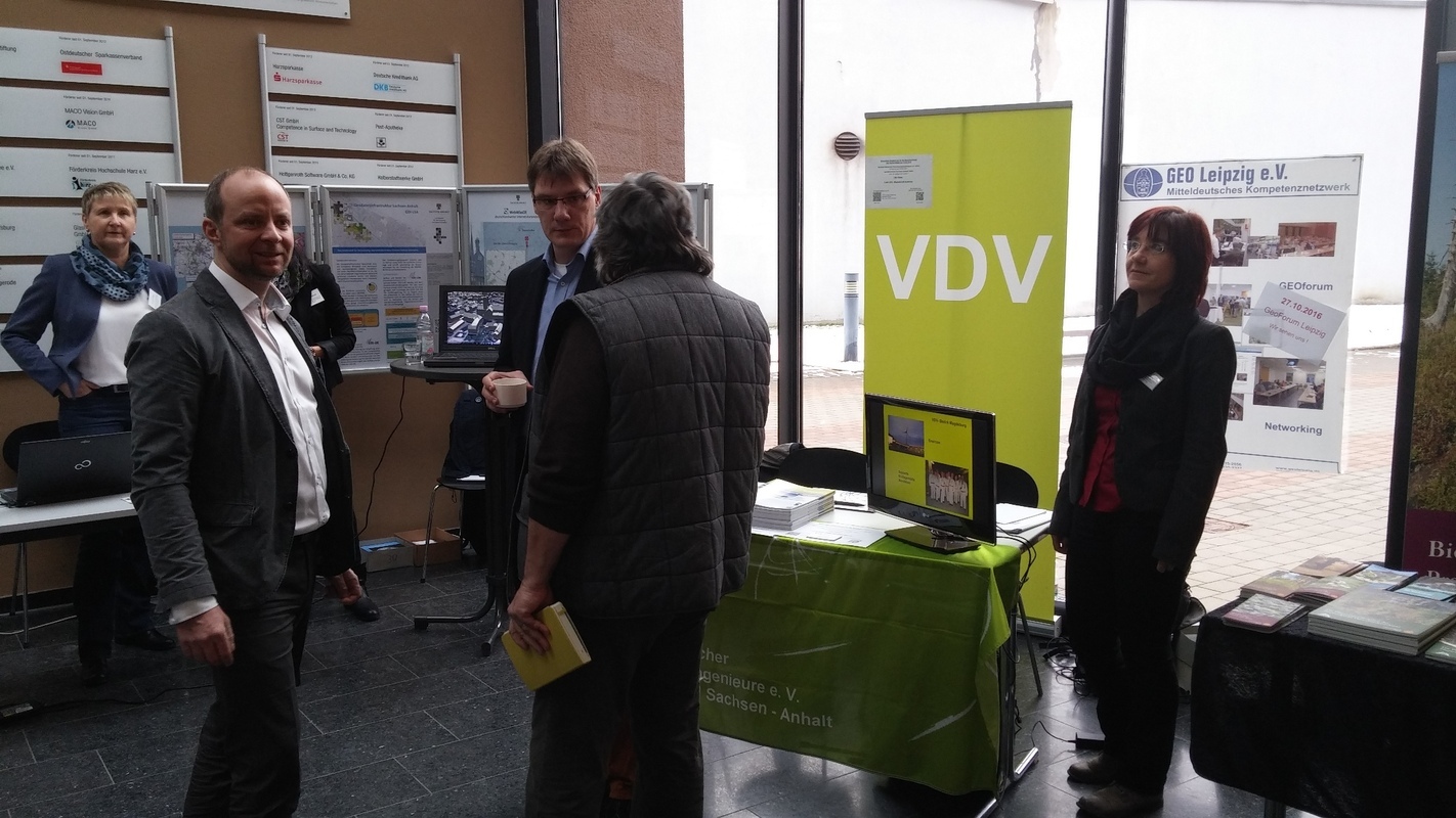 Der VDV-Landesverband Sachsen-Anhalt präsentierte sich auch wieder auf der begleitenden Fachausstellung. Jeder Teilnehmer erhielt den Flyer unseres Verbandes in seiner Tagungsmappe. Ebenso konnten wir ein neues Mitglied in unserem Verband begrüßen. Der Vorsitzende des netzwerk|GIS, Dr. Matthias Pietsch, sagte: „Der Geofachtag hat sich in Sachsen-Anhalt etabliert.“ Dem kann man sich durchaus anschließen.